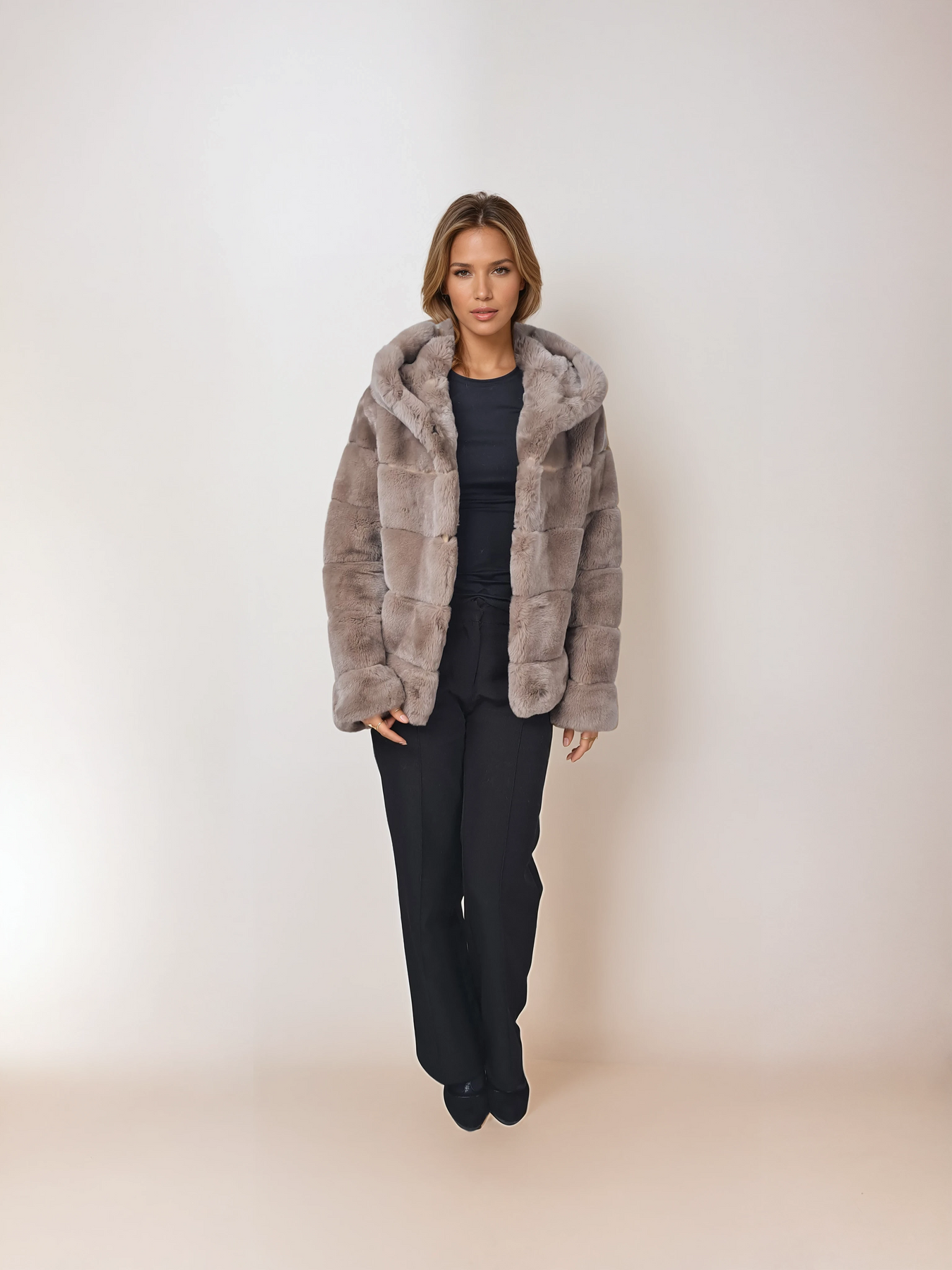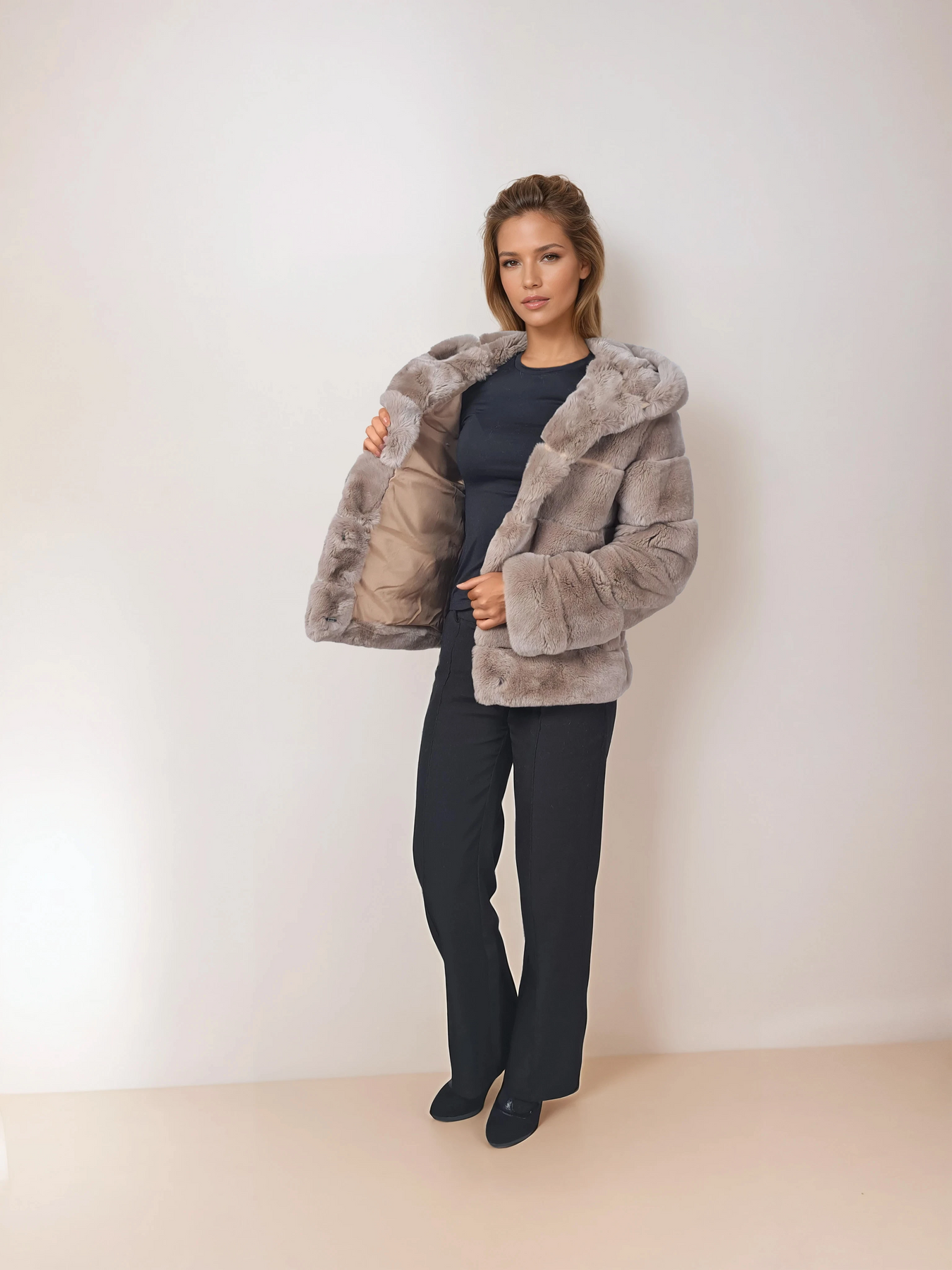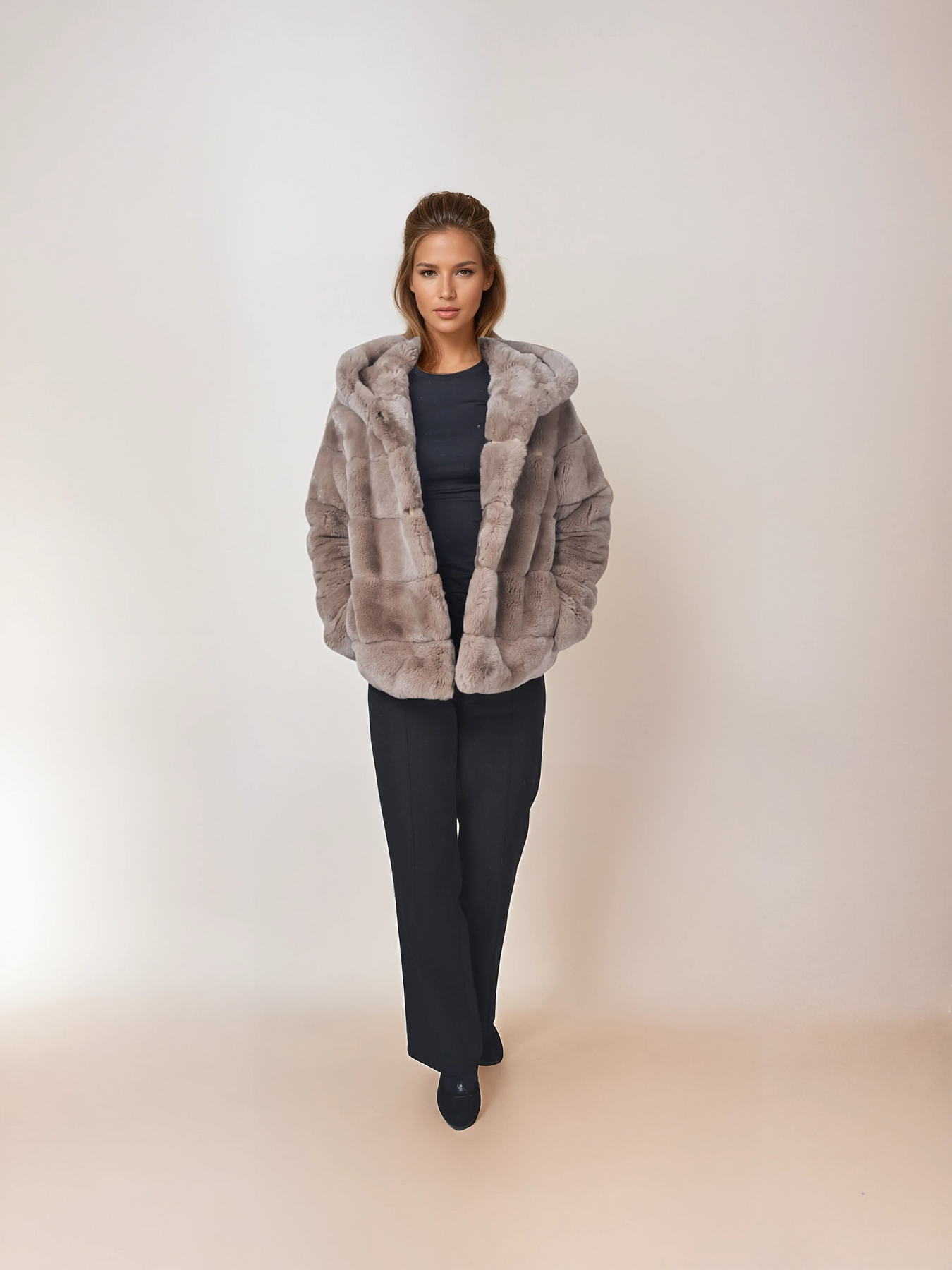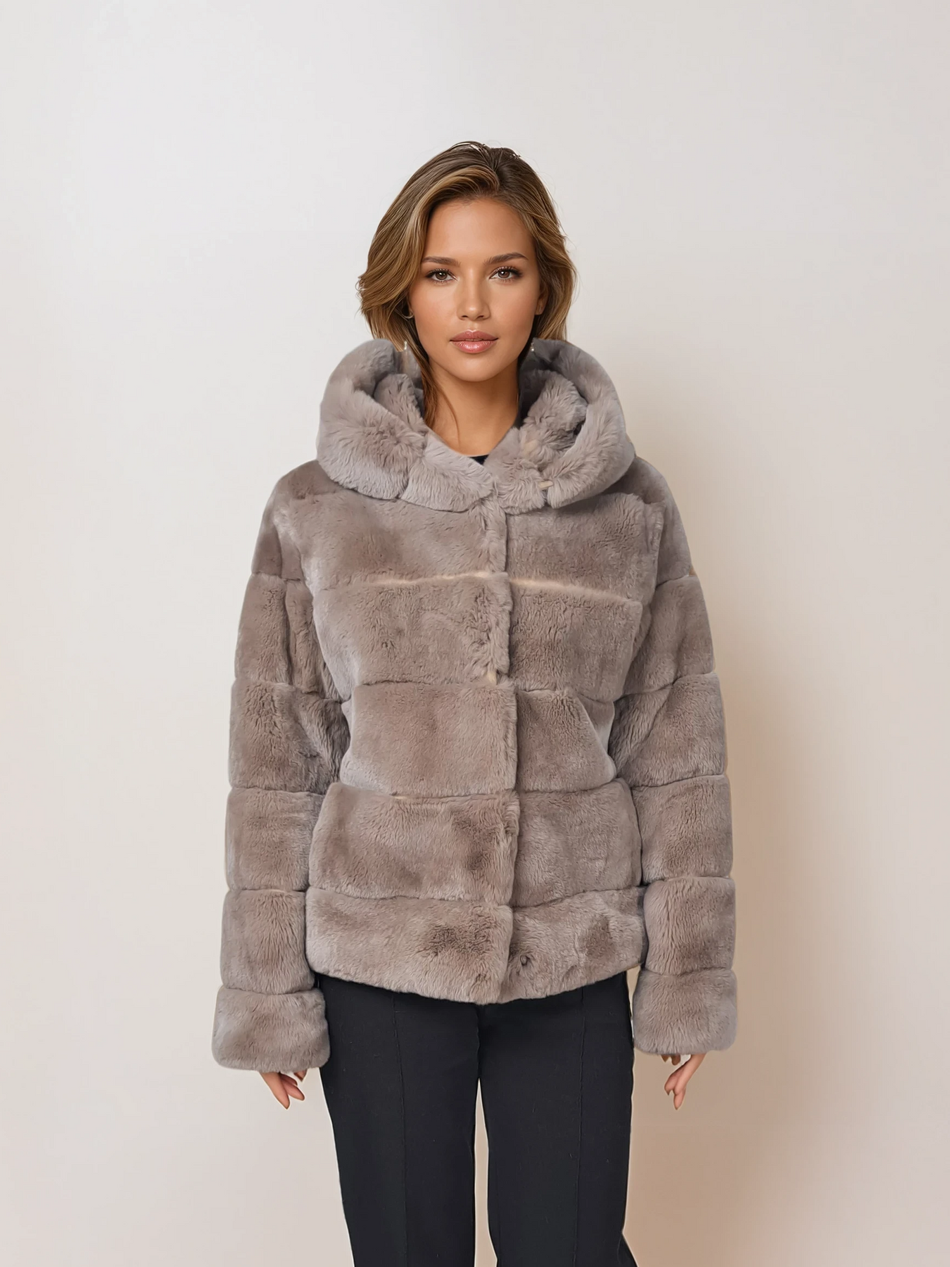 Stampe Denmark is introducing the Petrovski, 60 cm., hood Rex Coat for Women in cafe latte – a perfect fusion of nicety, classic style, and sporty sophistication. Crafted from beautiful black rex rabbit fur, this short coat is designed to keep you warm throughout the winter season.