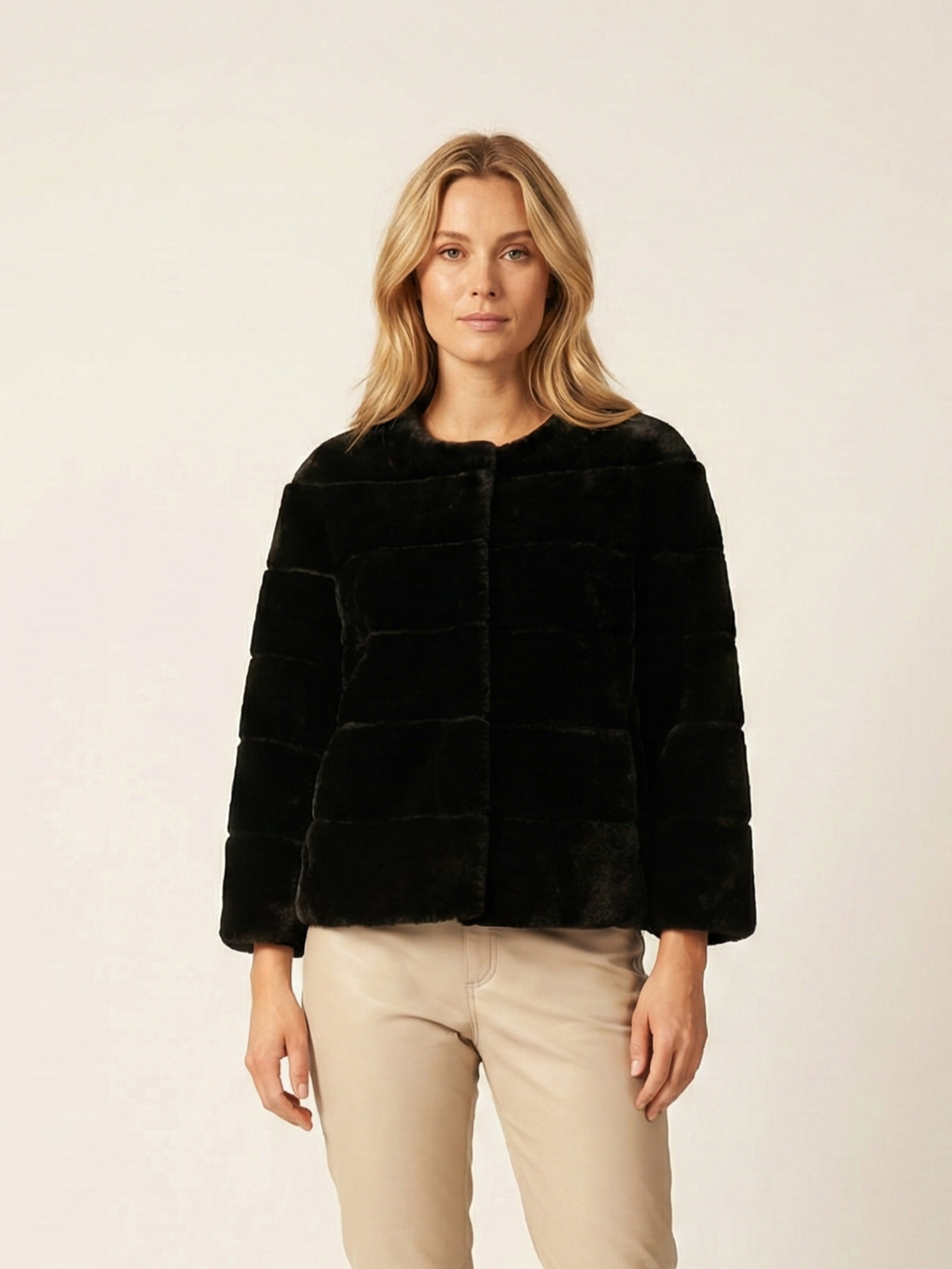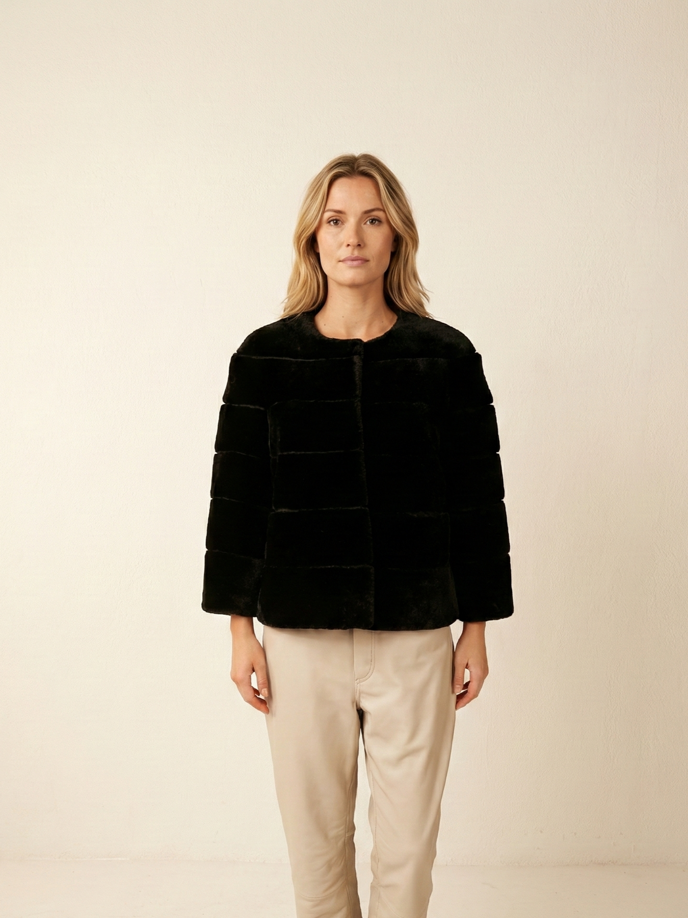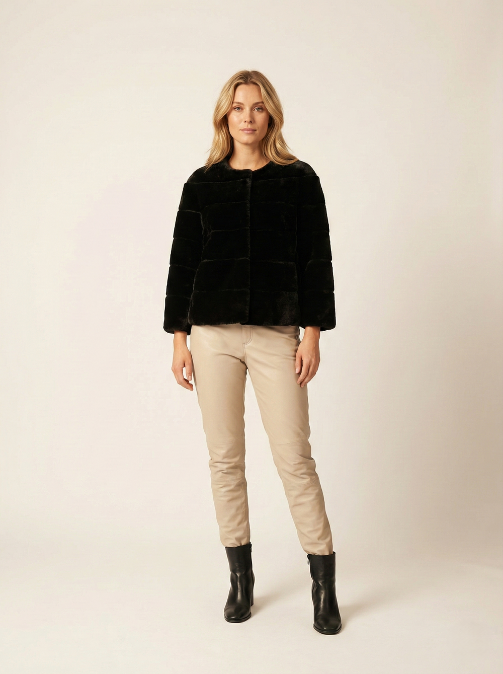 Horiane, 55 cm. - Hair raide d'agneau - femmes - noir