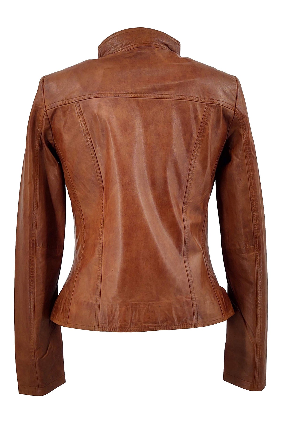 P 14-01 - Lamb Malli Leather - Women - Dark Cognac / Læder Skinds Jakke - Levinsky - Kvinde | STAMPE PELS