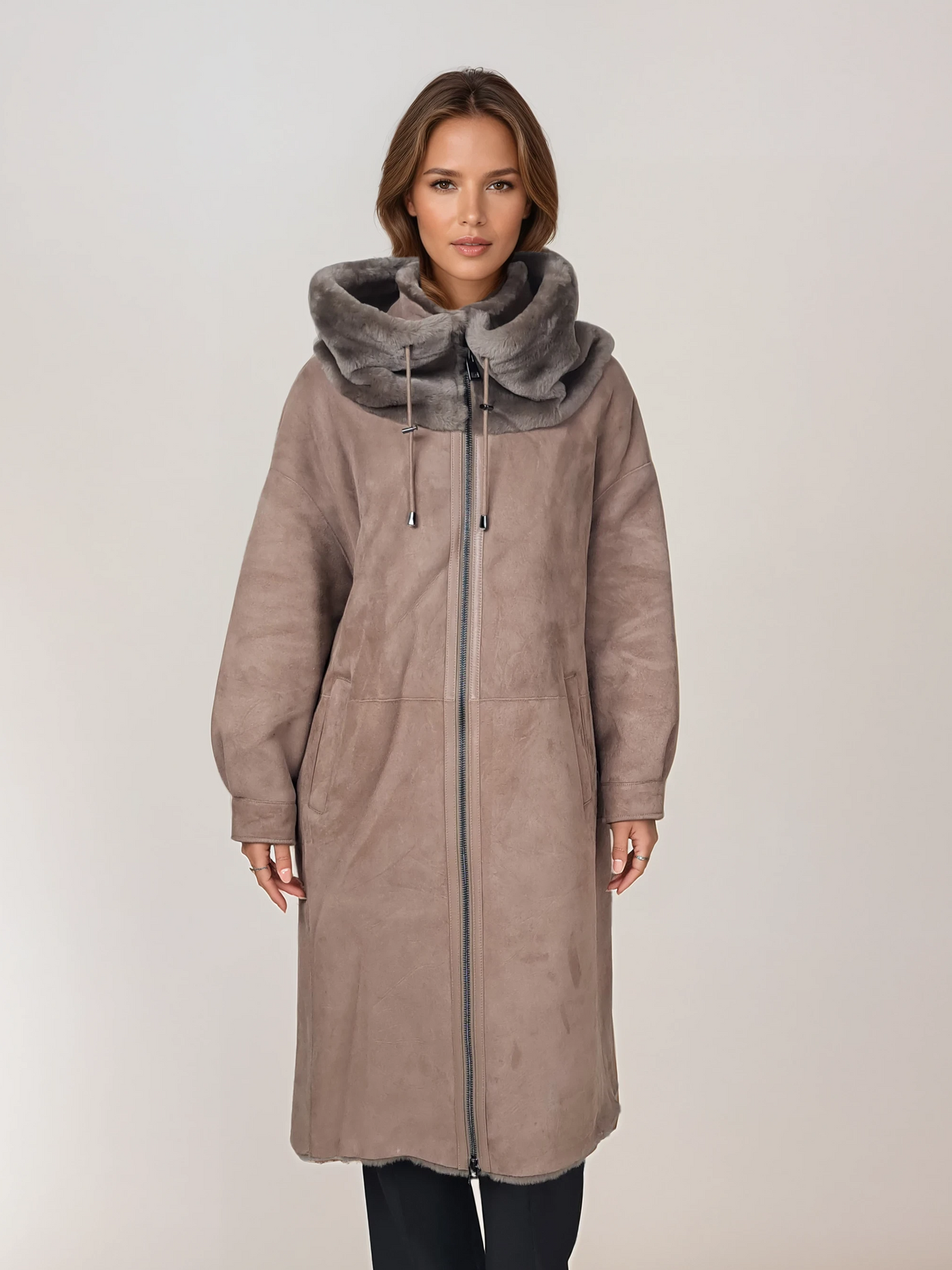 New Gabiana er indbegrebet af moderne luksus med sin hætte prydet af en spændende pelskrave, der tilføjer teksturel dybde og visuel charme. Fremstillet af smidigt ruskindslam i varm mørk eg, udvikler ydersiden karakter med slid, mens den omsluttende pelsforing giver uovertruffen blødhed og isolering. Denne jakke fejrer ægteskabet mellem karakteristisk design og sansekomfort - hvert element inviterer til berøring og beundring. For kvinden, der værdsætter både nærvær og raffinement, bliver New Gabiana mere end overtøj; det forvandles til et signaturstykke, der afspejler kræsen smag og påskønnelse af exceptionelt håndværk.