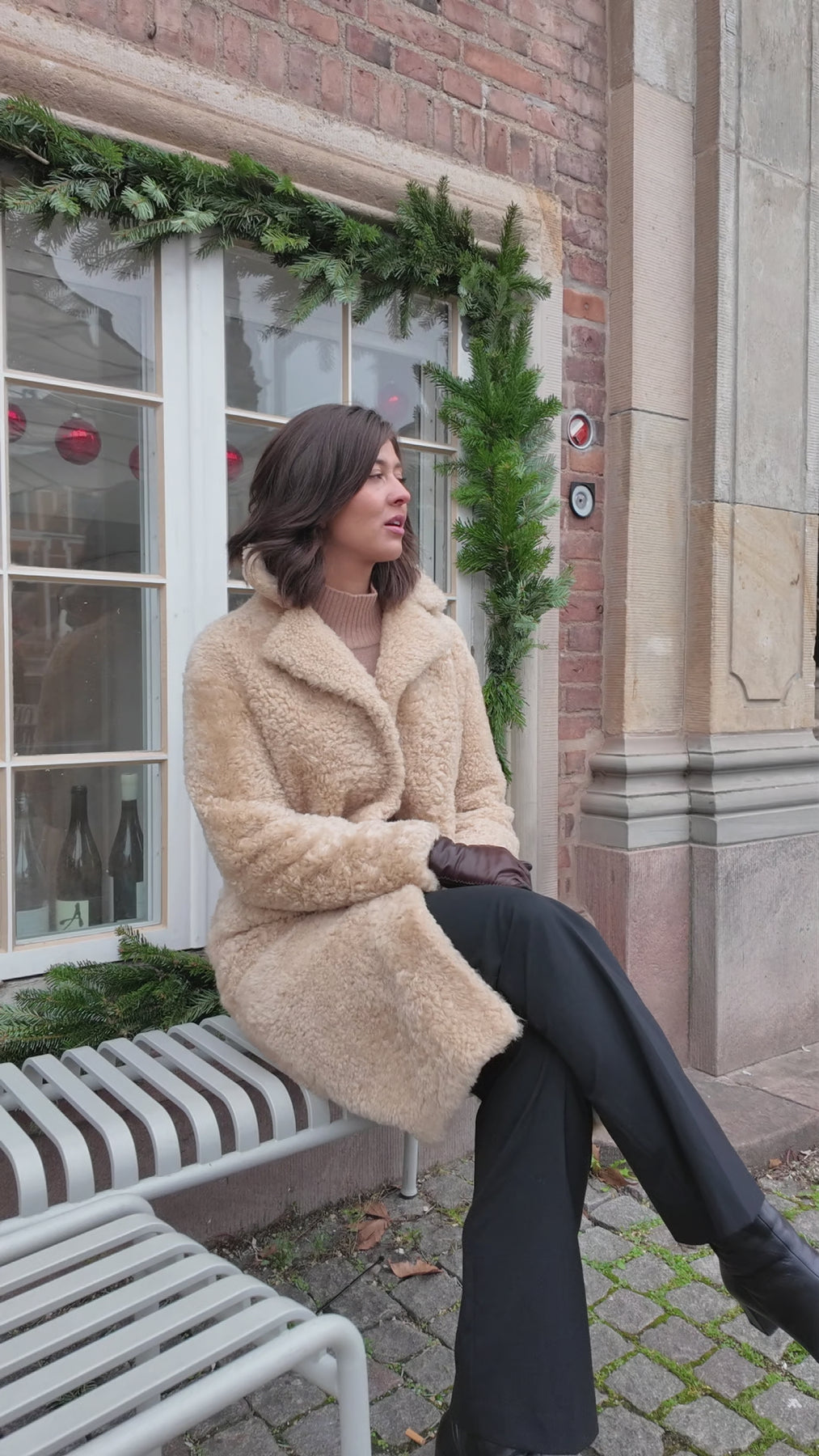 Svøb dig i den sublime luksus fra vores Lacoon-lammepelsfrakke. Ekstraordinært blød at røre ved, tilbyder dette tidløse stykke en utrolig varme i et overraskende let design. Den elegante, lange silhuet og klassiske revers skaber et udtryk af ubesværet sofistikation, perfekt til at løfte ethvert vinterlook.