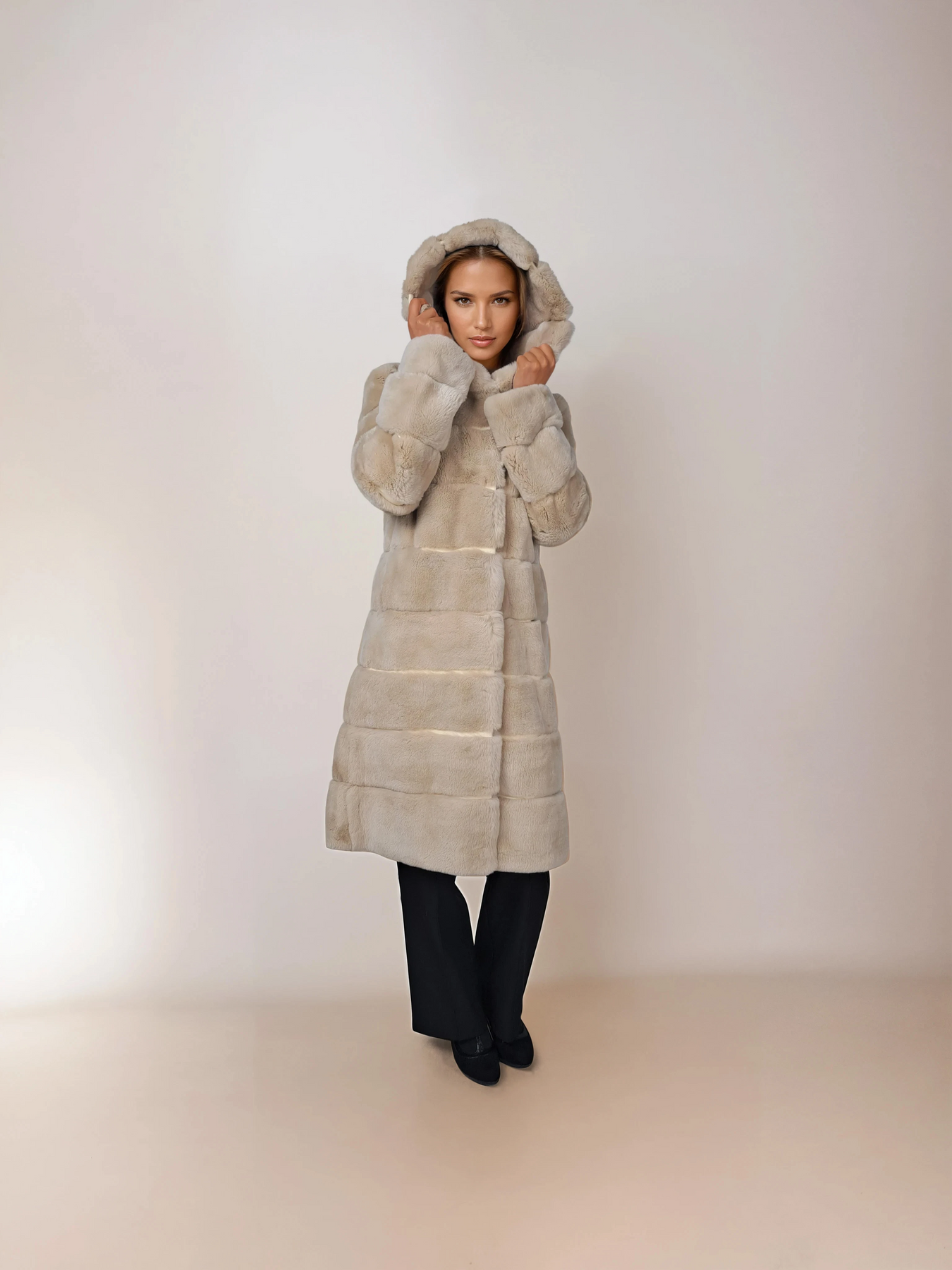 Petrovski, 100 cm. - Krave - Rex - Kvinder - Cream Få opmærksomhed i denne slående hættejakke, med en raffineret krave og udformet i luksuriøs rex-pels med en sofistikeret sort finish. Den justerbare indvendige tunnelstreng i taljen giver dig fuld kontrol over din silhuet, hvilket skaber en tilpasset pasform, der forbedrer dine naturlige konturer. På 100 cm leverer dette statement-stykke generøs længde og nærvær, ideel til dem, der sætter pris på modigt, premium-ydertøj. Kraven tilføjer arkitektonisk interesse og forhøjet stil. En tidløs investering for den kræsne kvinde, der søger kompromisløs kvalitet og markant elegance.