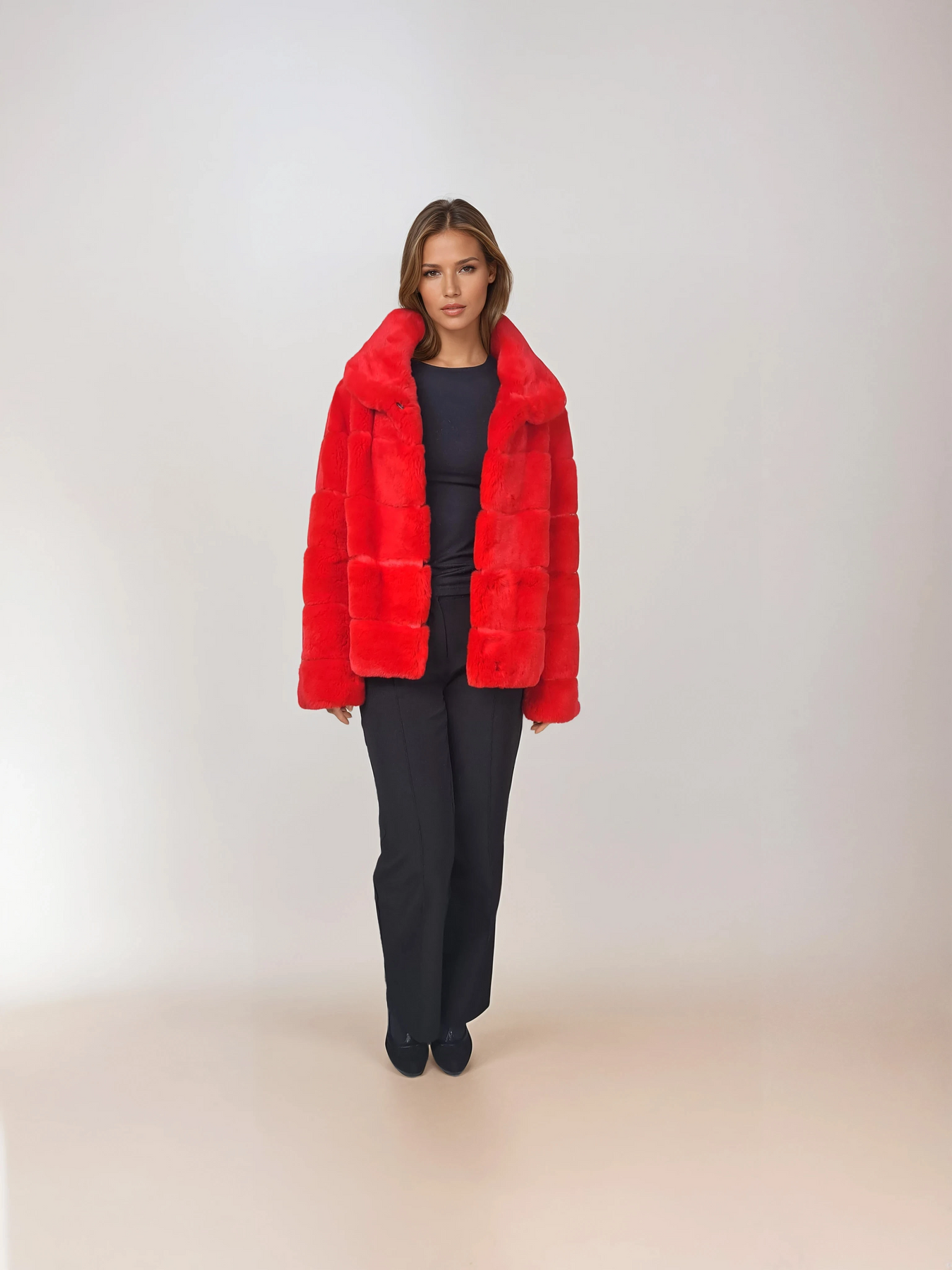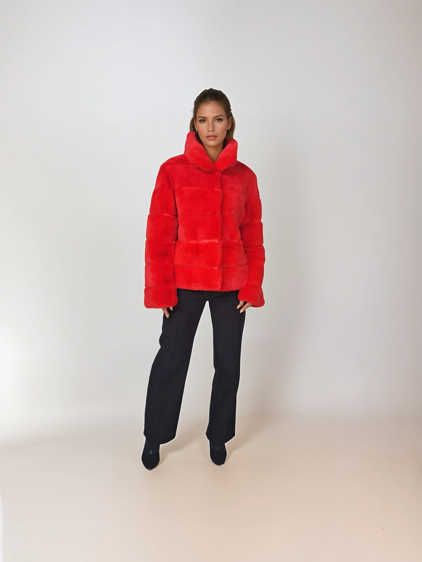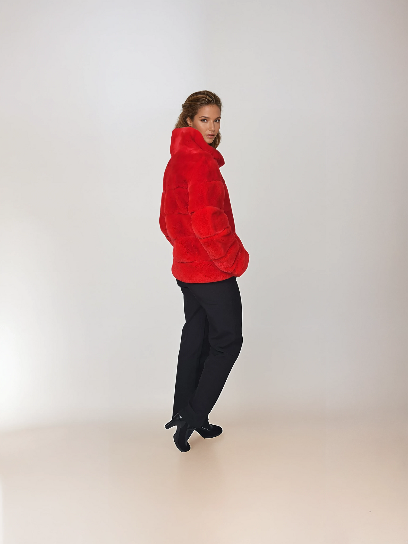 Stampe Denmark introducerer Petrovski, 60 cm., krave Rex frakke til kvinder i sort – en perfekt blanding af pænhed, klassisk stil og sporty sofistikering. Denne korte frakke er lavet af smuk rød rex kaninpels og er designet til at holde dig varm gennem hele vintersæsonen.