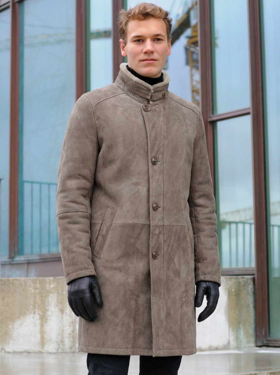 Herrefrakke i rulamspels. Prøv denne klassiske rulamsjakke til mænd. Din krop vil ånde fritt gennem pelsen og foret. Den flotte krave er smuk, når den er åben, men kan også lukkes for din komfort, når det bliver koldt.