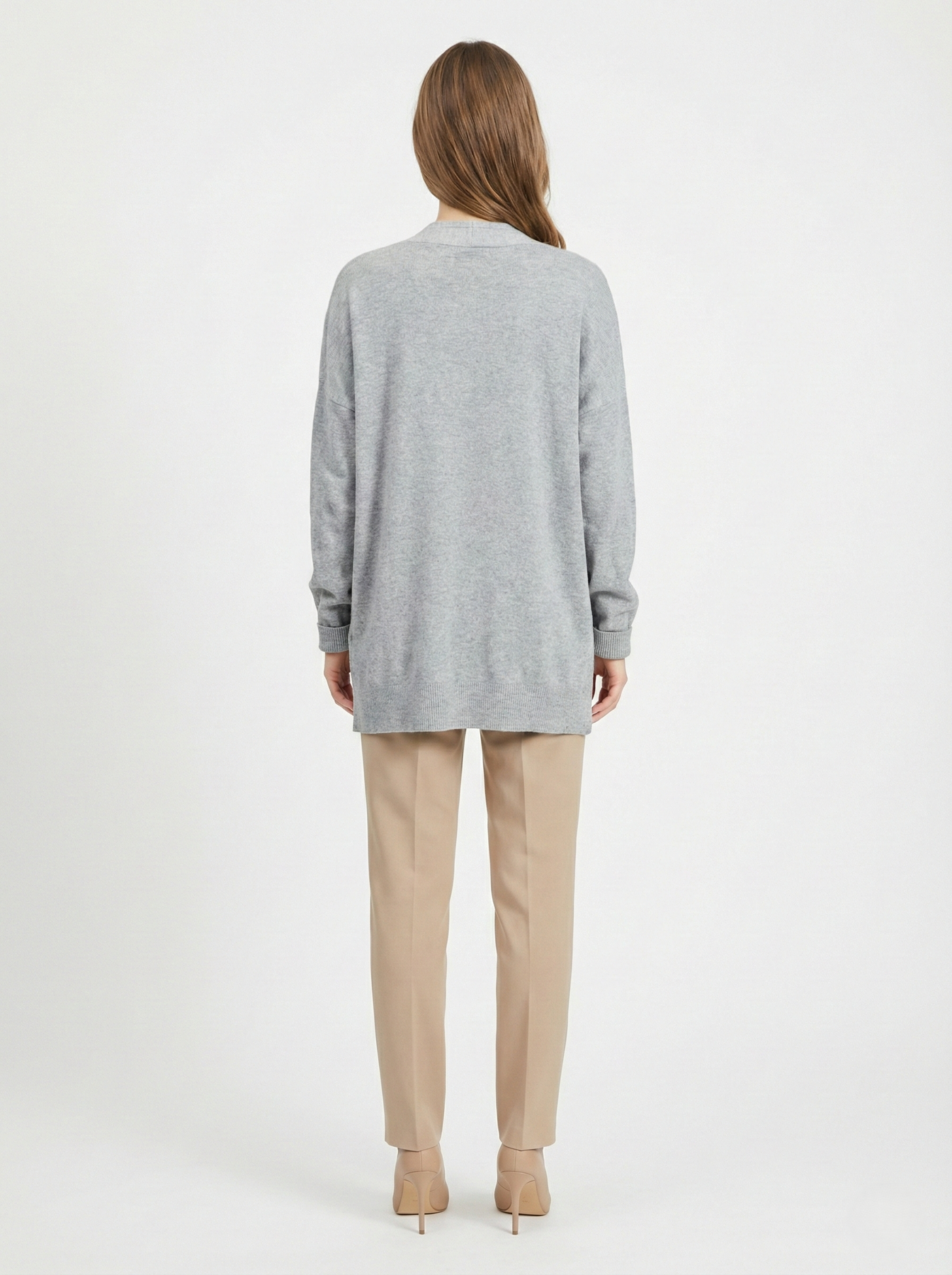 SY-25005 lång kofta - 100 % ren kashmir - dam - grå